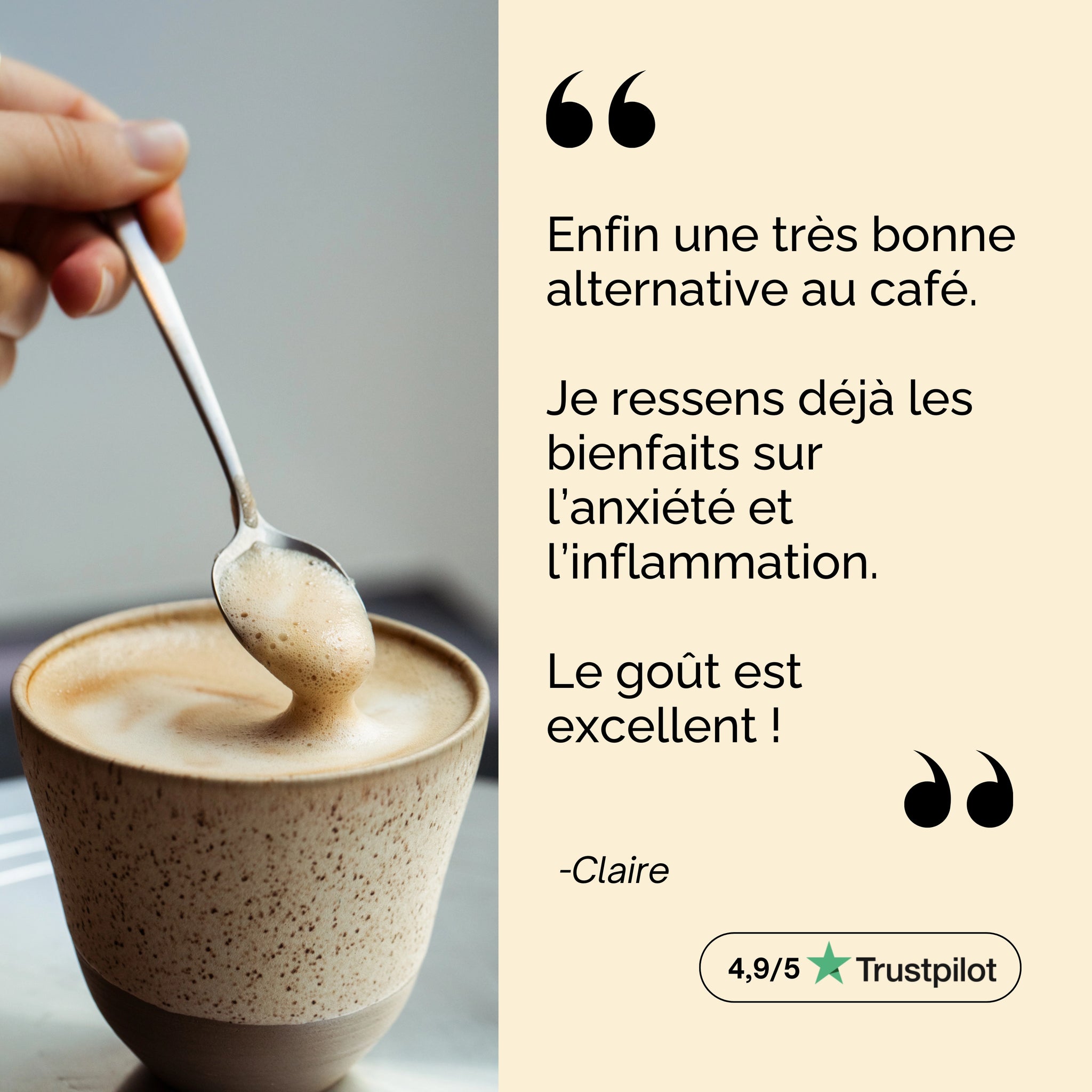 Un goût savoureux de café et de céréales torréfiées parfait pour accompagner une énergie stable, une concentration plus claire, une digestion apaisée et une vraie sérénité au quotidien.