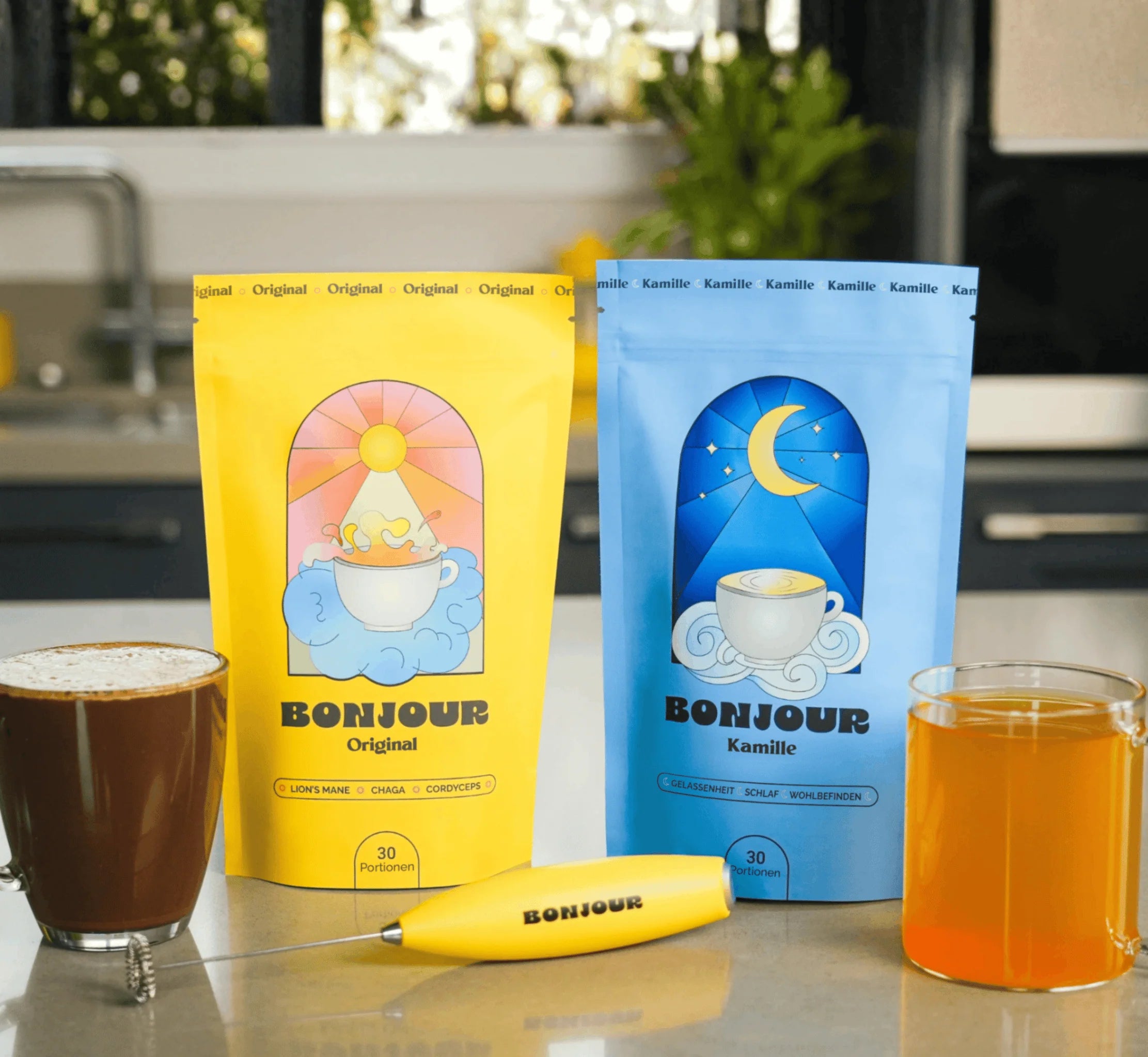 Ajoutez de l'eau chaude et/ou votre lait préféré, mélangez avec le mousseur offert, savourez. Votre rituel bien-être, simplifié.