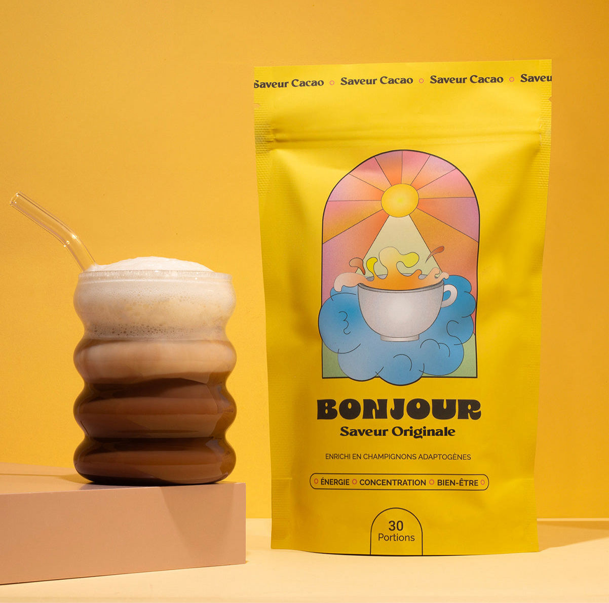 J'essaie "Bonjour" Original depuis plusieurs mois et j'en ressens vraiment les effets : une belle énergie toute la journée, sans les up & down du café. Une saveur que j'adore, avec un soupçon de café, m'a permis de me désintoxiquer complètement du vrai café ! A part pour sa magique odeur, alors oui, j'en bois un de temps en temps mais l'envie de café et les maux de tête dus à son absence ont disparus. Merci les champignons !